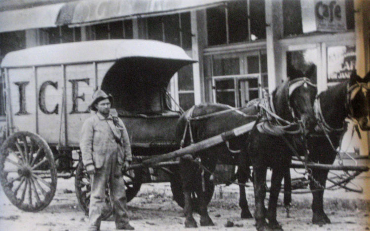 | Ice truck in front of Interurban Cafe, purchased in 1916 by Gus & Angelica Andrews |