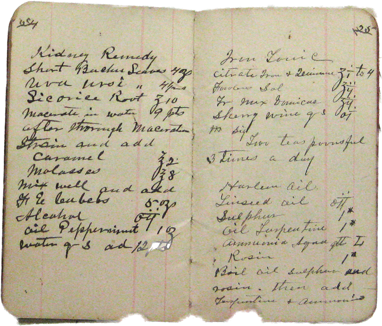 The symbol "Rx" that is still seen today on prescriptions comes from the Latin word for recipe. Early druggists used recipe books to mix ingredients for custom medicines. A recipe that Bond used for sulfa antibiotics is as follows: