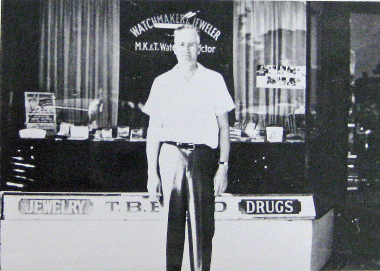 The store was the official railroad time keeper. Engineers, brakemen and railroad personnel set their time pieces by Bond Drug Store time.