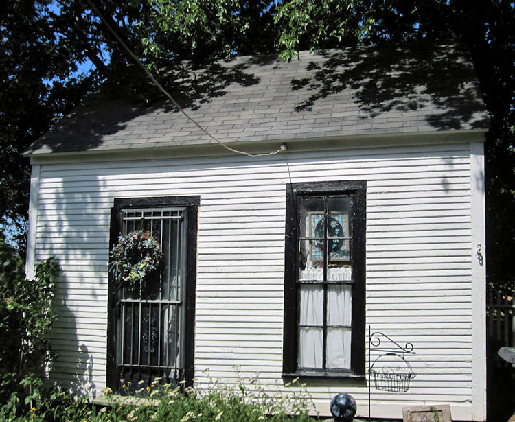 In 1875, the original log cabin was enclosed within a larger home, incorporating the cabin as the kitchen at the back of the house. The single-story home was a typical Foursquare plan common to the period. The painted clapboard exterior was embellished with Victorian details on the porch columns and pediment, as well as the roof eaves and rake.