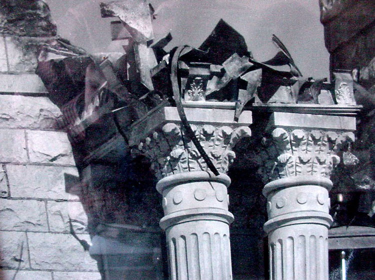 The next morning the rim of the bell was visible through the ceiling of the first floor hallway. Weighing 1,525 pounds, it had marked the hours for 102 years until its supports were consumed by the fire.